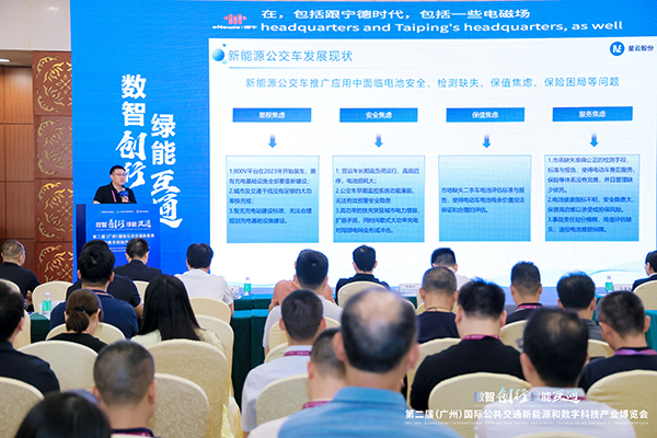 在本屆博覽會及系列專題會議中,新能源公共交通領(lǐng)域的充換電基礎(chǔ)設(shè)施建設(shè)、電池安全管理、數(shù)字技術(shù)融合運用等成為熱議焦點?!俺鞘屑壋鋼Q電網(wǎng)絡(luò)建設(shè)與運營專題會”作為重要平行論壇之一,匯聚了多位企業(yè)領(lǐng)袖與技術(shù)專家進行交流與分享。星云股份在鋰電池檢測領(lǐng)域擁有超過20年的技術(shù)與經(jīng)驗積累,參與制定了5項電池國家標(biāo)準(zhǔn)及一系列行業(yè)標(biāo)準(zhǔn)、團體標(biāo)準(zhǔn)。劉總代表公司在專題會中以《電池健康A(chǔ)I大模型賦能營運車輛電池安全全生命周期管理》為主題發(fā)表演講。